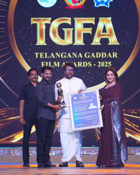 తెలుగు చలనచిత్ర పరిశ్రమలో అగ్ర శిఖరాగ్రాన నిలిచిన మెగాస్టార్ చిరంజీవికి ప్రతిష్టాత్మకమైన ‘ఎన్టీఆర్ జాతీయ పురస్కారం’ దక్కడం యావత్ తెలుగు సినీ లోకానికి గర్వకారణం. తెలంగాణ గద్దర్ ఫిల్మ్ అవార్డ్స్ వేదికపై ఈ గౌరవం ప్రకటించడం ఆయన దశాబ్దాల సినీ ప్రస్థానానికి మరియు కళా సేవకు దక్కిన సరైన గుర్తింపు. లెజెండరీ నటుడు నందమూరి తారక రామారావు గారి పేరు మీద ఇచ్చే ఈ అవార్డును అందుకోవడం తనకెంతో సంతోషాన్ని ఇచ్చిందని చిరంజీవి గారు పేర్కొన్నారు.