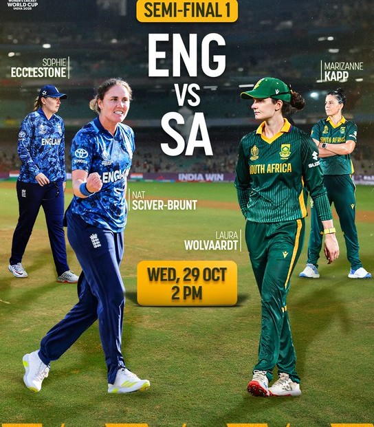 క్రికెట్ ప్రపంచకప్ 2025లో ఉత్కంఠభరితమైన దశ ప్రారంభమైంది — అది సెమీఫైనల్స్ సమయం! ప్రపంచవ్యాప్తంగా ఉన్న అభిమానులు ఈ ఘన పోరును ఆసక్తిగా ఎదురుచూస్తున్నారు. ఈరోజు జరిగే తొలి సెమీఫైనల్లో నాలుగు సార్లు ప్రపంచకప్ గెలిచిన ఇంగ్లాండ్ జట్టు, ధాటిగా ఆడుతున్న దక్షిణాఫ్రికా జట్టుతో తలపడనుంది. ఈ మ్యాచ్లో విజయం సాధించే జట్టు నేరుగా ఫైనల్లో అడుగుపెడుతుంది.